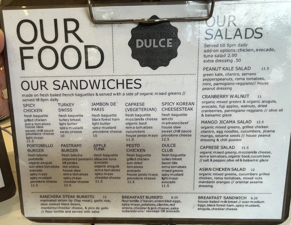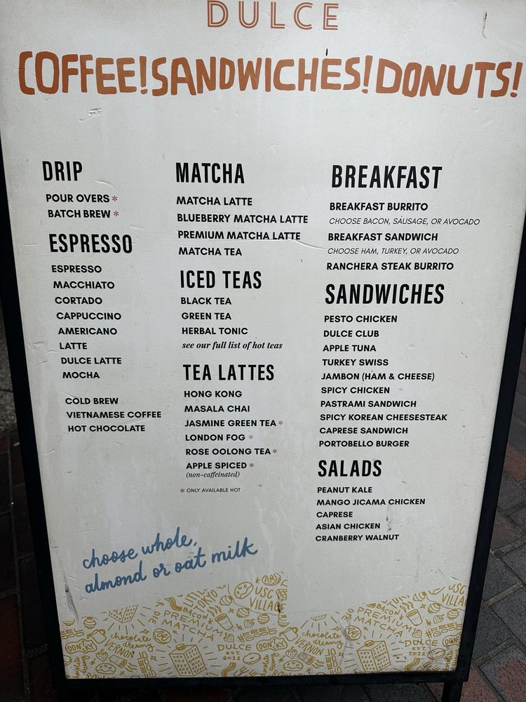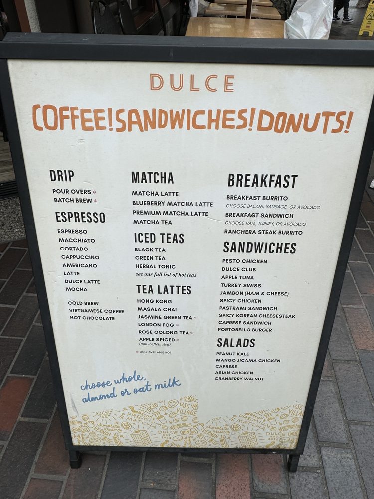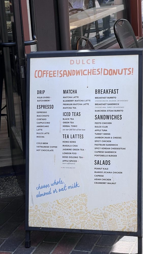 Cafe Dulce is a trendy spot in Little Tokyo Plaza, Los Angeles, known for its delicious pastries and diverse menu. With options for gluten-free and vegan diets, this cafe offers a range of sandwiches, salads, and breakfast items. The Ranchera Steak Burrito and Caprese sandwich are popular choices, showcasing the fresh ingredients and unique flavors. Customers rave about the matcha drinks and Vietnamese coffee, praising the strong flavors and quality. The service is friendly and efficient, making it a pleasant experience for all visitors. Although seating is limited inside, the ambiance and vibe are top-notch, adding to the overall appeal of Cafe Dulce. Don't miss out on their sweet treats and signature dishes when you visit this must-try cafe.
